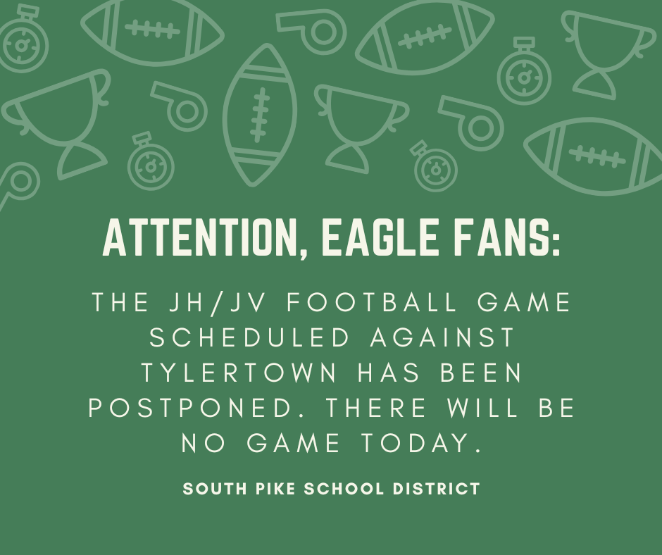 Attention, Eagle fans! Unfortunately, the JH/JV football game scheduled against Tylertown has been postponed. There will be no game today. We appreciate your understanding and will keep you updated with any new information. Go Eagles! 🏈🦅