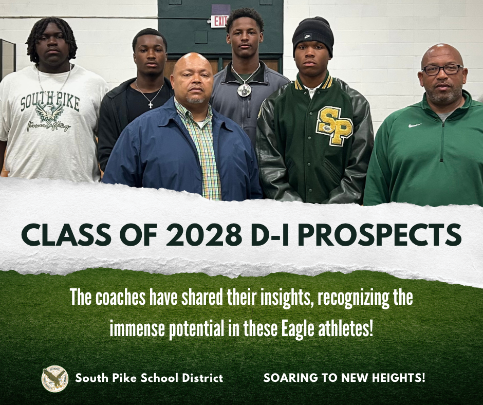 South Pike School District is thrilled to announce that the Class of 2028 is already catching the eyes of coaches and scouts as future Division I athletes! With immense talent and dedication, these Eagle athletes are truly soaring to new heights—their hard work and potential promise a bright future in sports. Let’s cheer them on as they continue to make us proud! 🦅 #EaglePride #SoaringToNewHeights